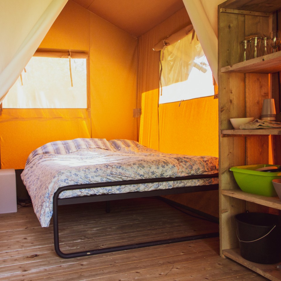 Uiteraard zijn er standaard kussens en dekbedden aanwezig in de safaritent voor 6 personen. Een lakenpakket kan worden bijgeboekt voor € 10,- per lakenpakket. Tevens bestaat de mogelijkheid om een babypakket (kinderstoel + campingbedje) bij te boeken voor € 10,- per set. per boeking. Huisdieren zijn toegestaan. Het tarief voor een huisdier is € 5,- per nacht. Graag aanvinken in het boekinssysteem dat u een hond meeneemt.